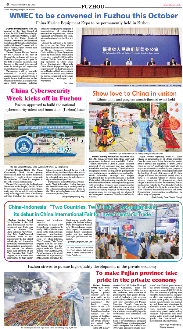 9/22-International Daily News-FUZHOU 2023/9/22 source: International Daily Print