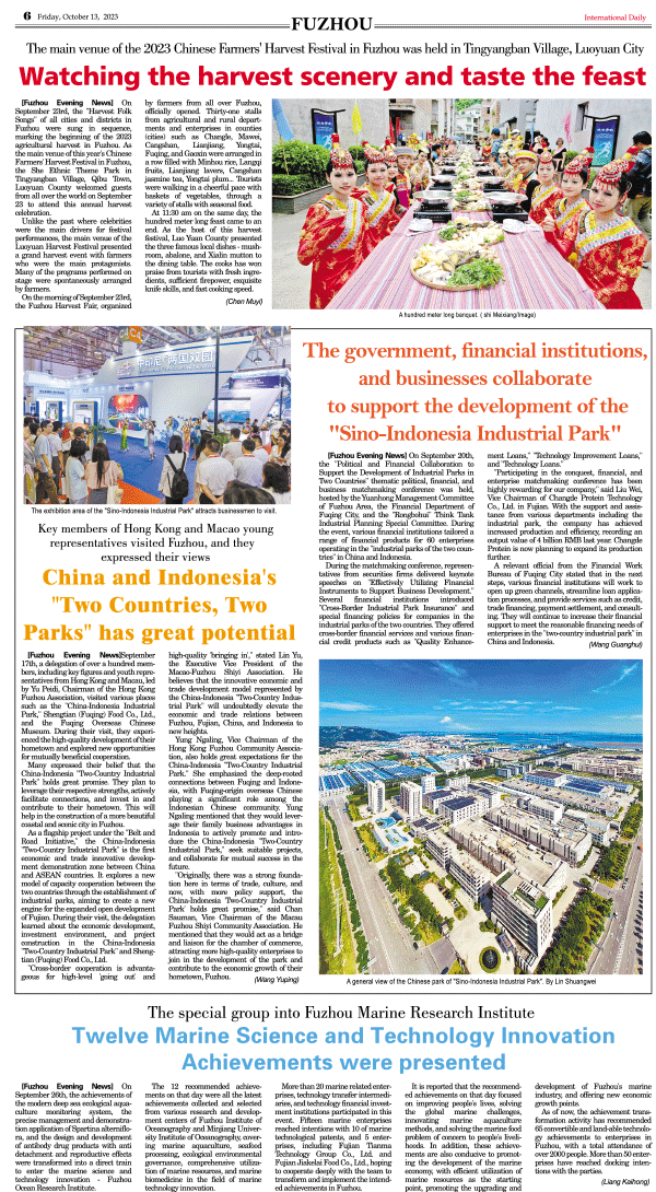 10/13-International Daily News-FUZHOU 2023/10/13 source: International Daily Print