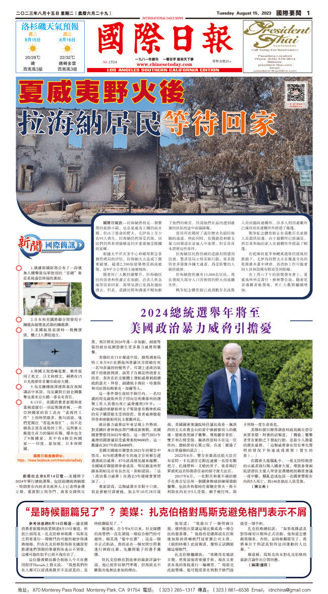 15日國際日報1-國際要聞 发布日期:2023/8/17 来源:國際日報 打印