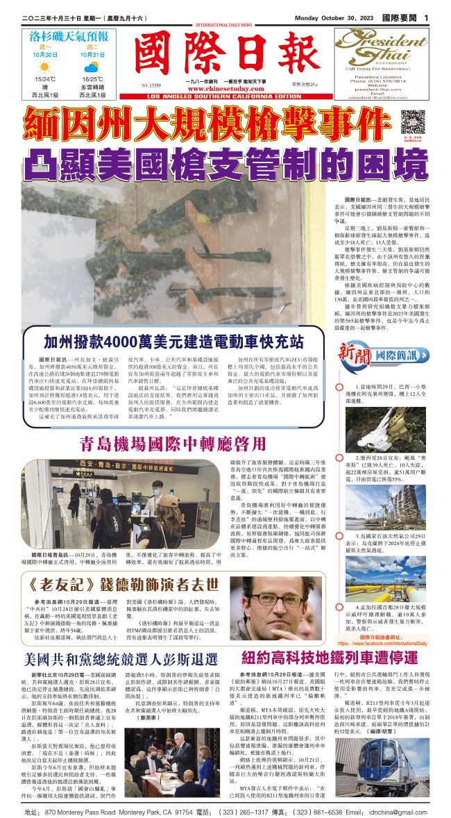 30日國際日報1-國際要聞 发布日期:2023/10/31 来源:國際日報 打印