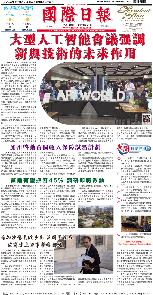 8日國際日報1-國際要聞 发布日期:2023/11/8 来源:國際日報 打印