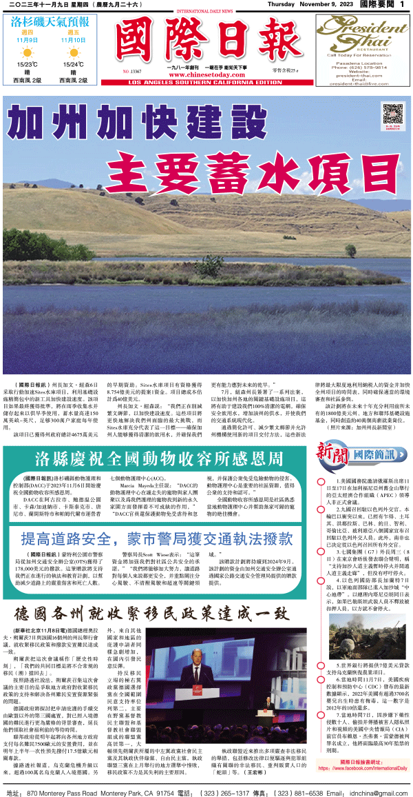 9日國際日報1-國際要聞 发布日期:2023/11/9 来源:國際日報 打印