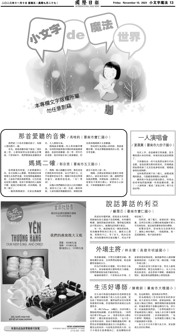 10日國際日報13-小文字魔法 发布日期:2023/11/10 来源:國際日報 打印