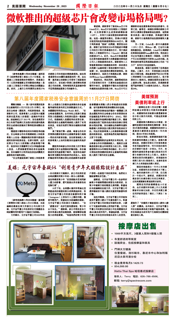 29日國際日報2-美國要聞 发布日期:2023/11/29 来源: 打印