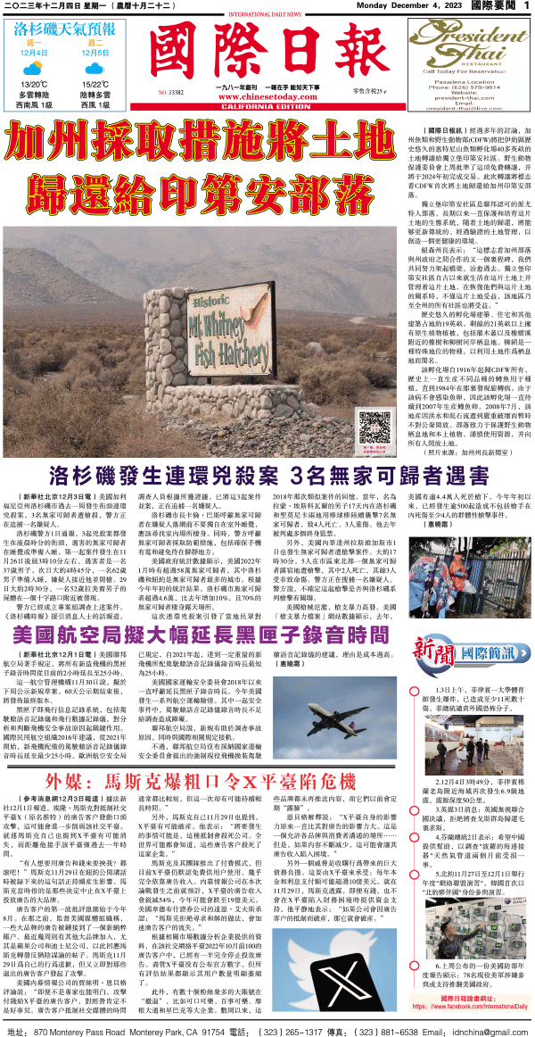 4日國際日報1-國際要聞 发布日期:2023/12/18 来源:國際日報 打印