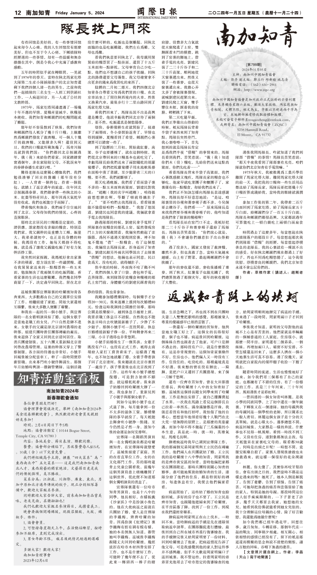 5日國際日報12-南加知青 发布日期:2024/1/7 来源:國際日報 打印