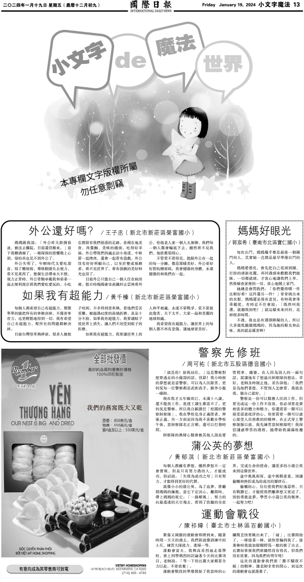 19日國際日報13-小文字魔法 发布日期:2024/1/19 来源:國際日報 打印