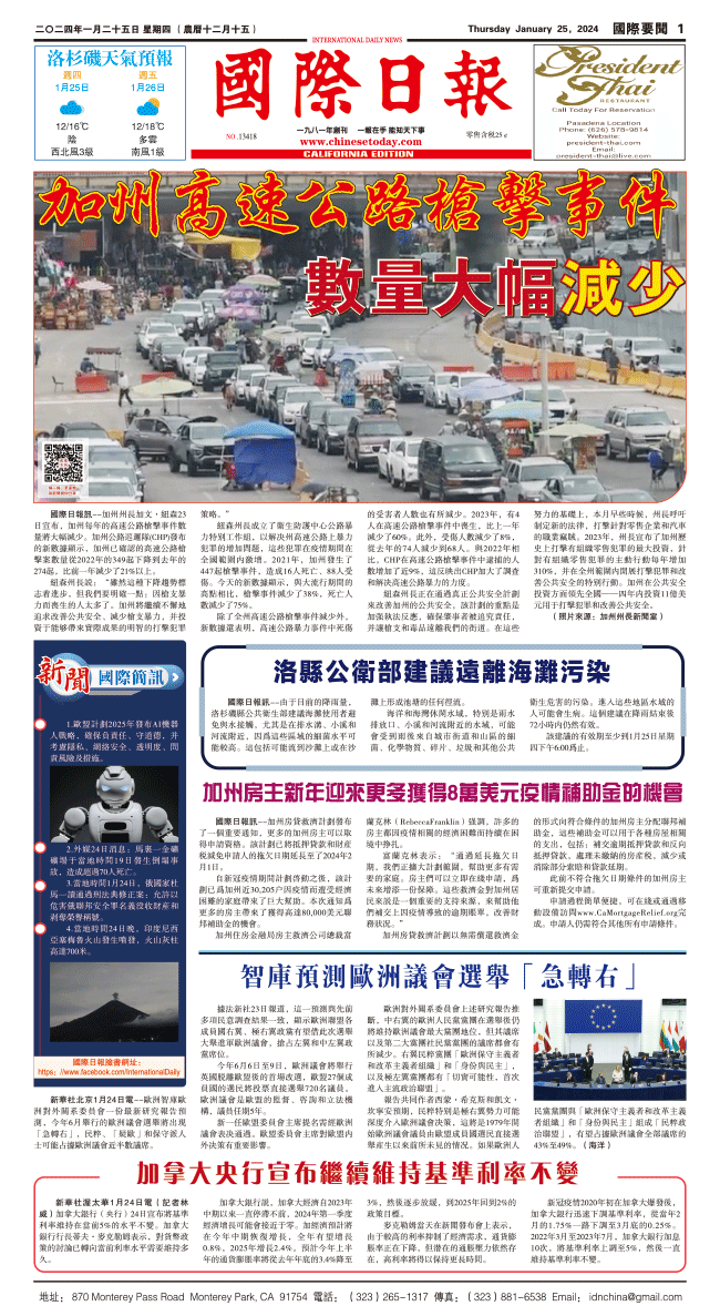 25日國際日報1-國際要聞 发布日期:2024/1/25 来源:國際日報 打印