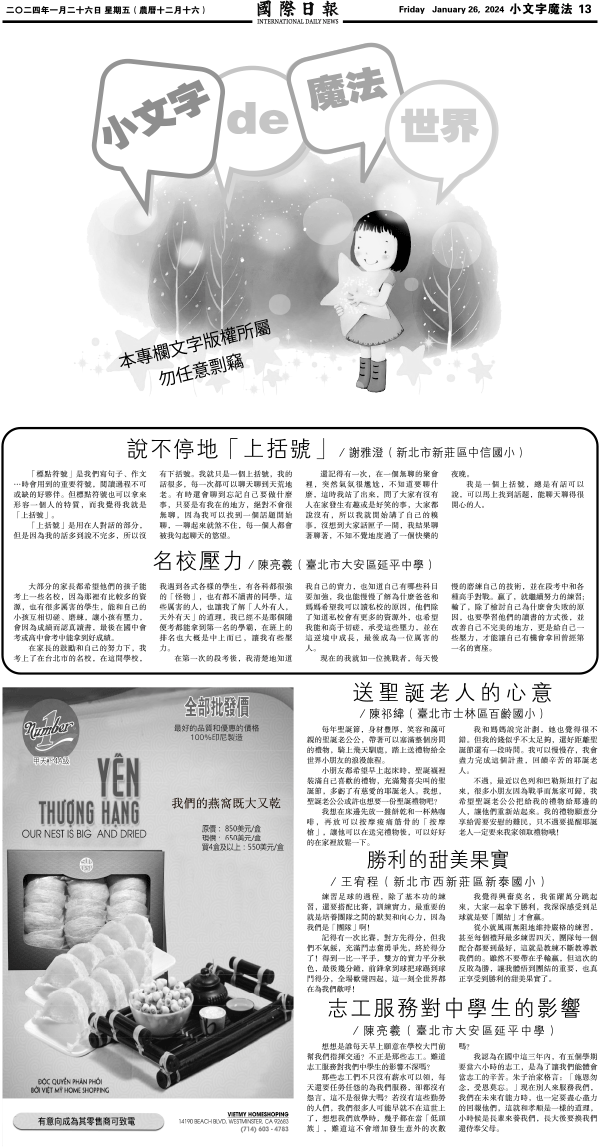 26日國際日報13-小文字魔法 发布日期:2024/1/26 来源:國際日報 打印