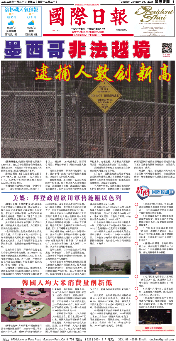 30日國際日報1-國際要聞 发布日期:2024/1/30 来源:國際日報 打印