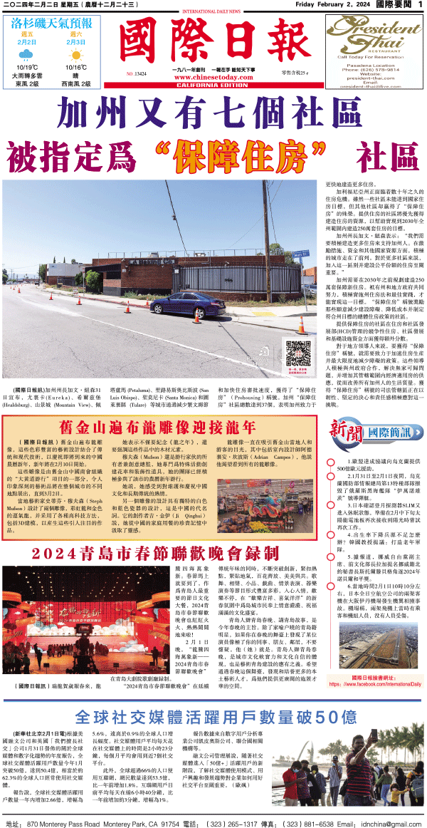 2日國際日報1-國際要聞 发布日期:2024/2/2 来源:國際日報 打印
