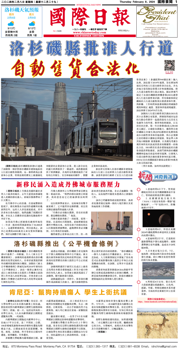 8日國際日報1-國際要聞 发布日期:2024/2/9 来源:國際日報 打印