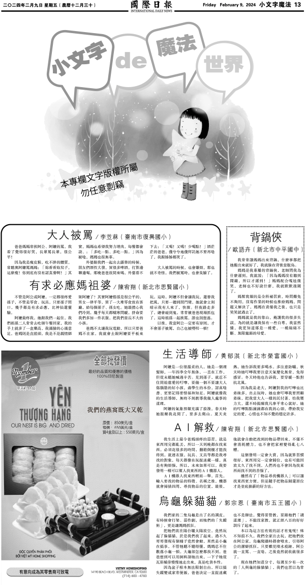 9日國際日報13-小文字魔法 发布日期:2024/2/9 来源:國際日報 打印