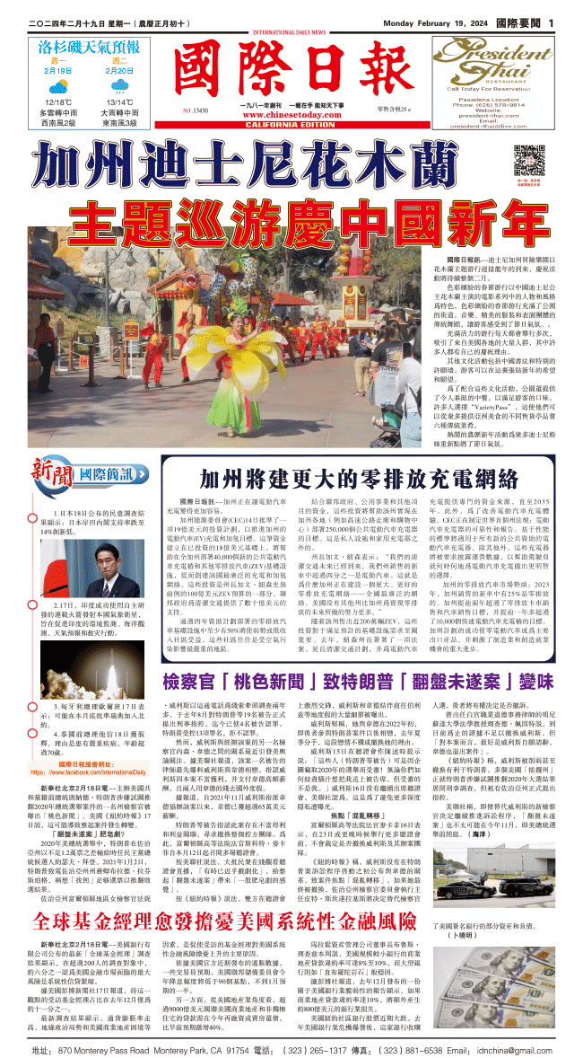 19日國際日報1-國際要聞 发布日期:2024/2/19 来源:國際日報 打印
