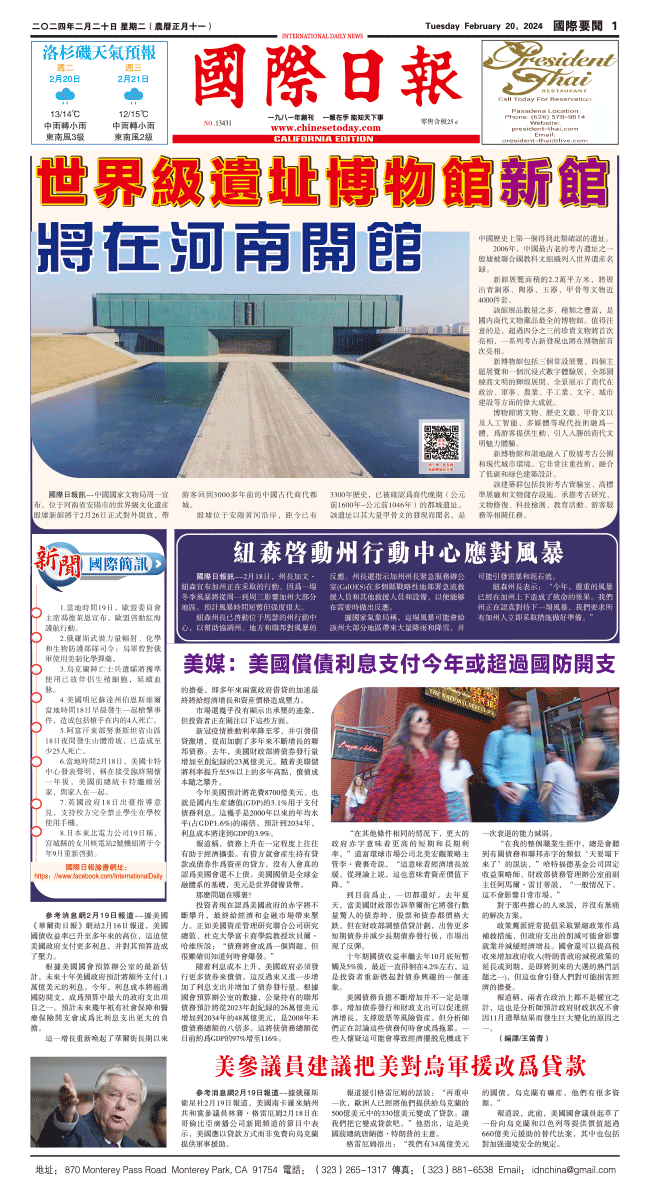 20日國際日報1-國際要聞 发布日期:2024/2/20 来源:國際日報 打印
