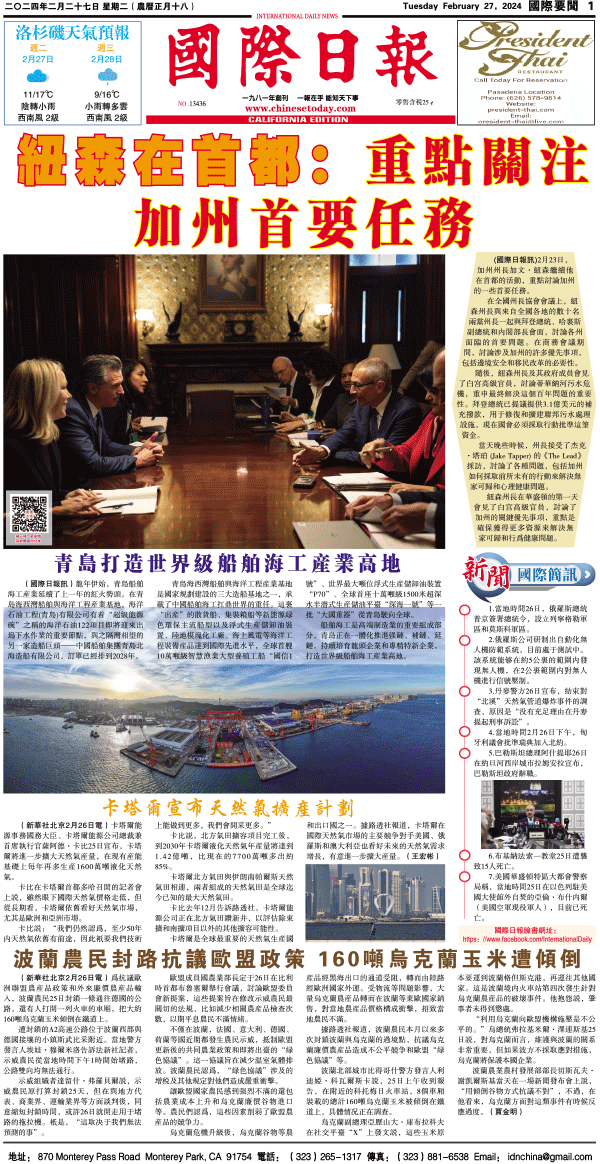 27日國際日報1-國際要聞 发布日期:2024/2/27 来源:國際日報 打印