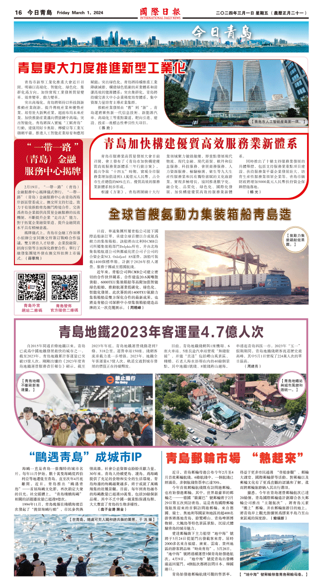 1日國際日報16-今日青島 发布日期:2024/3/1 来源:國際日報 打印