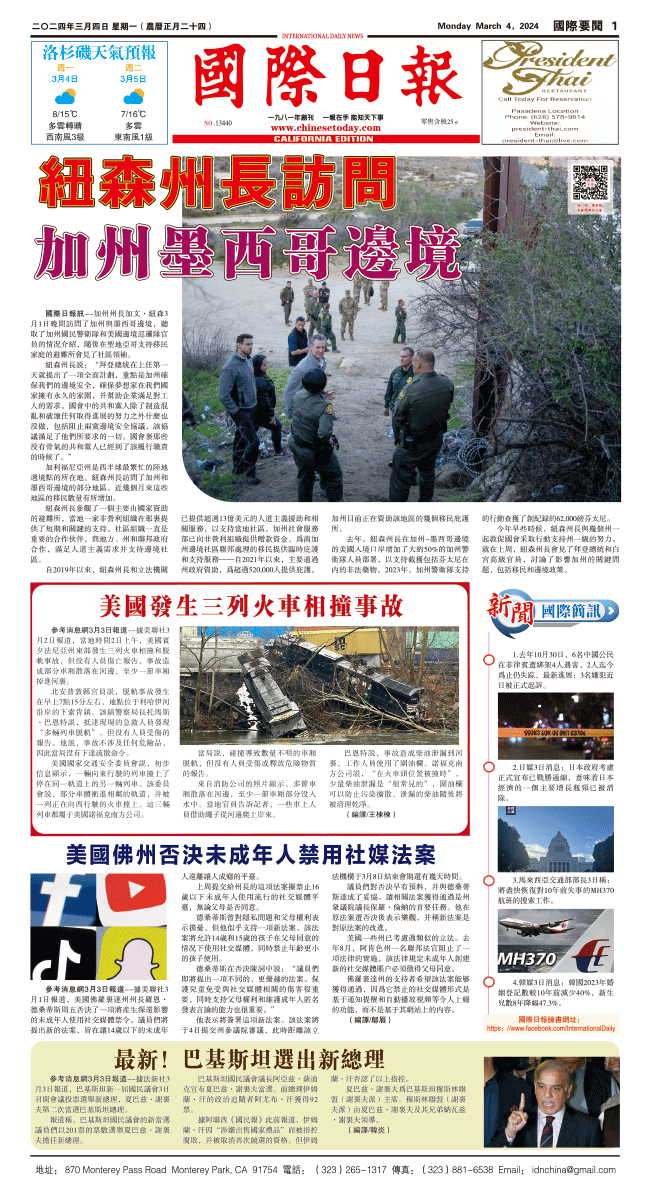4日國際日報1-國際要聞 发布日期:2024/3/4 来源:國際日報 打印