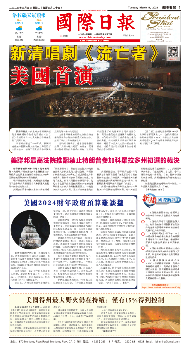 5日國際日報1-國際要聞 发布日期:2024/3/5 来源:國際日報 打印