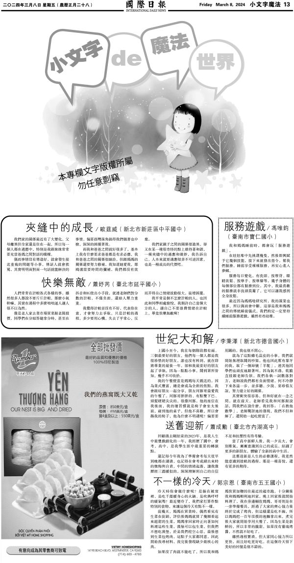 8日國際日報13-小文字魔法 发布日期:2024/3/8 来源:國際日報 打印