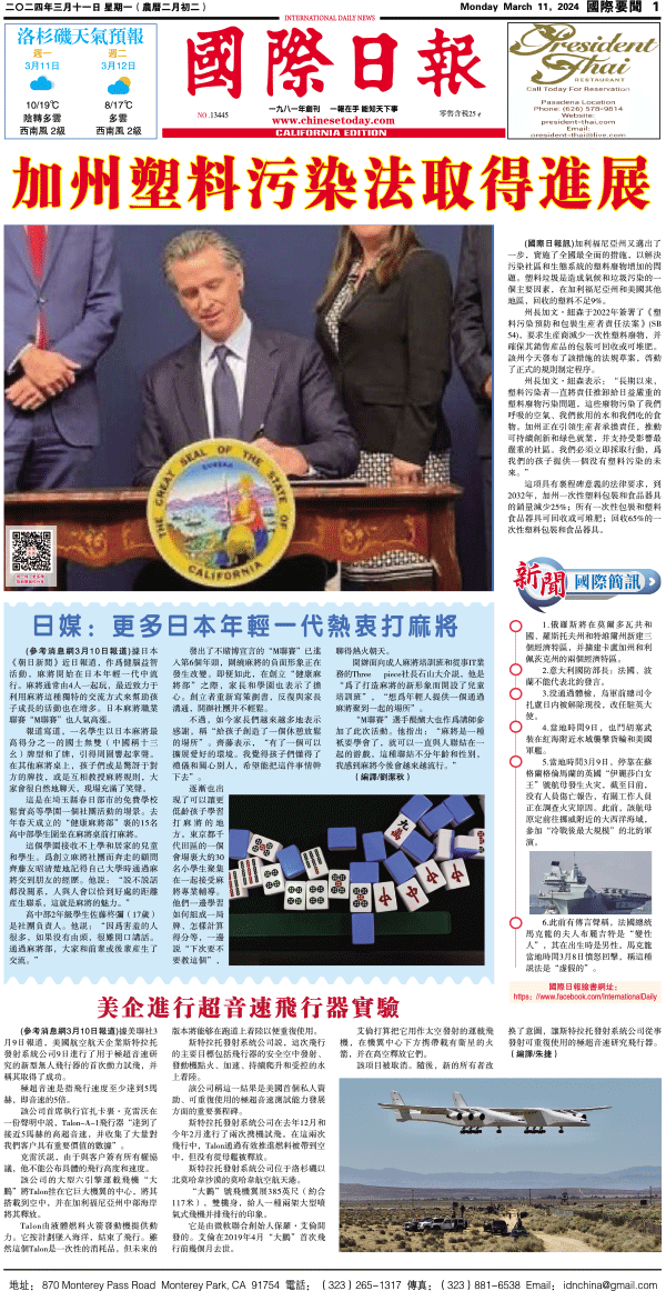 11日國際日報1-國際要聞 发布日期:2024/3/11 来源:國際日報 打印