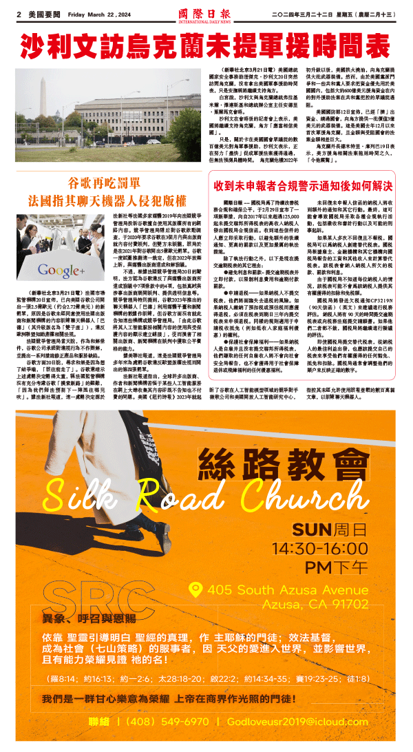 22日國際日報2-美國要聞 发布日期:2024/3/22 来源: 打印