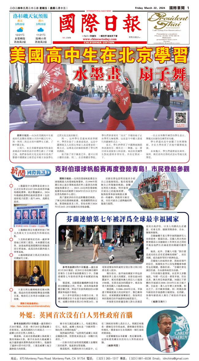 22日國際日報1-國際要聞 发布日期:2024/3/24 来源:國際日報 打印