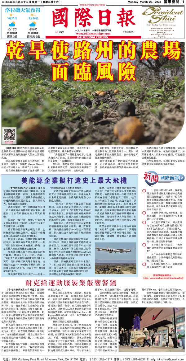25日國際日報1-國際要聞 发布日期:2024/3/25 来源:國際日報 打印