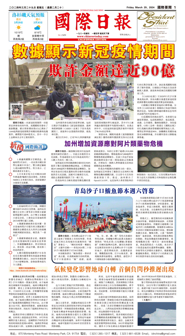 29日國際日報1-國際要聞 发布日期:2024/3/29 来源:國際日報 打印