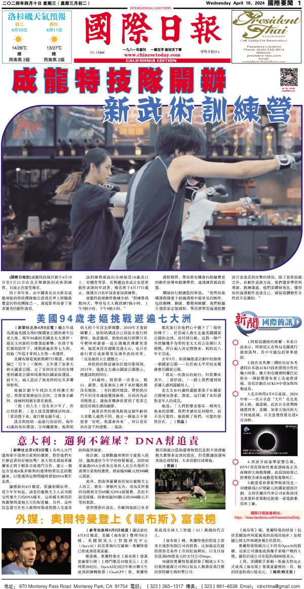 10日國際日報1-國際要聞 发布日期:2024/4/10 来源:國際日報 打印