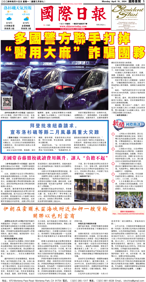 15日國際日報1-國際要聞 发布日期:2024/4/15 来源:國際日報 打印