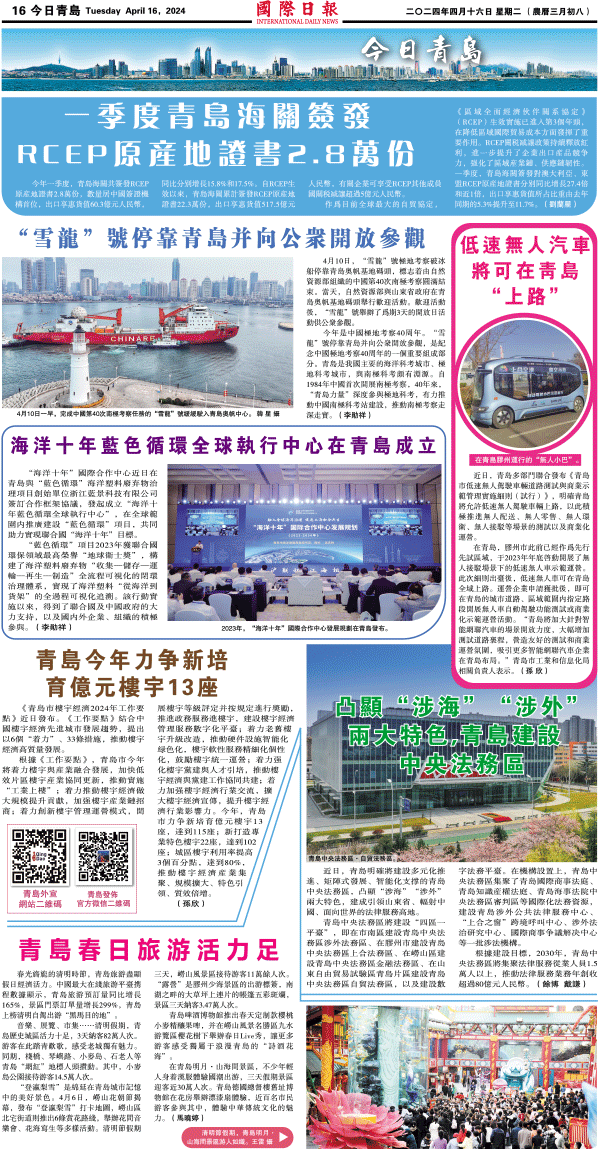 16日國際日報16-今日青島 发布日期:2024/4/16 来源:國際日報 打印