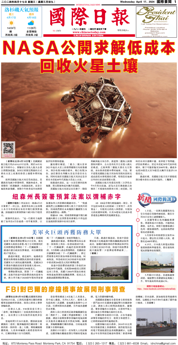 17日國際日報1-國際要聞 发布日期:2024/4/17 来源:國際日報 打印