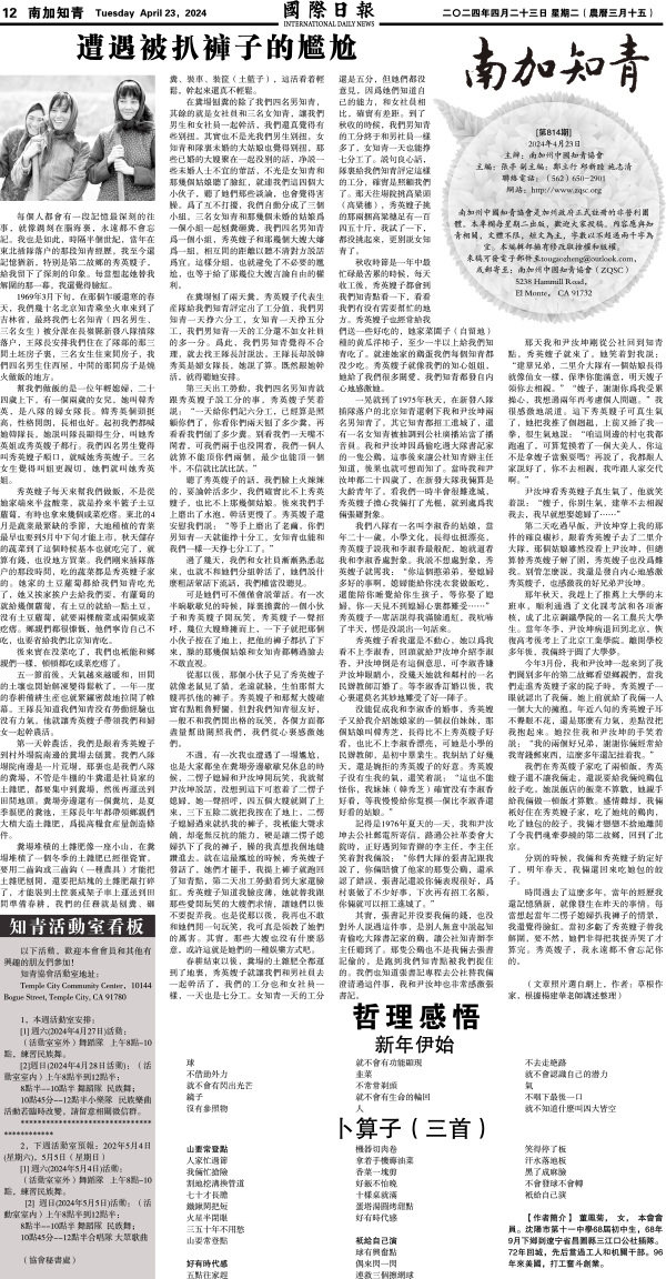 23日國際日報12-南加知青 发布日期:2024/4/23 来源:國際日報 打印