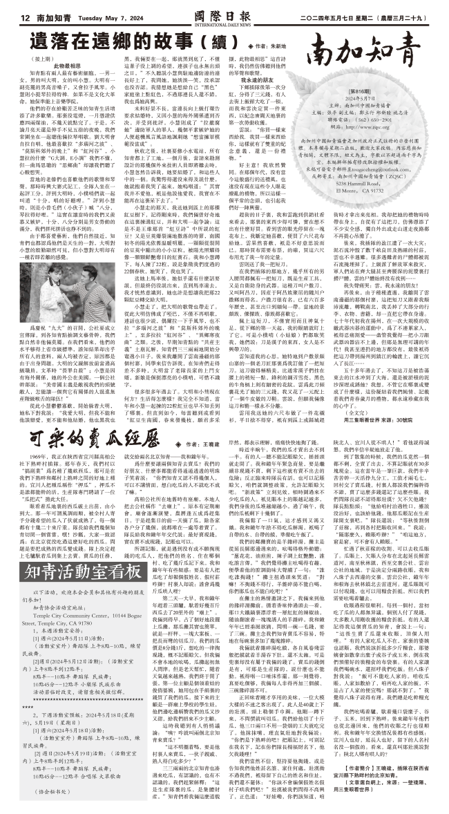 7日國際日報12-南加知青 发布日期:2024/5/7 来源:國際日報 打印