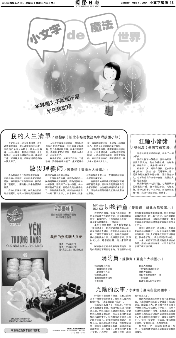 7日國際日報13-小文字魔法 发布日期:2024/5/7 来源:國際日報 打印