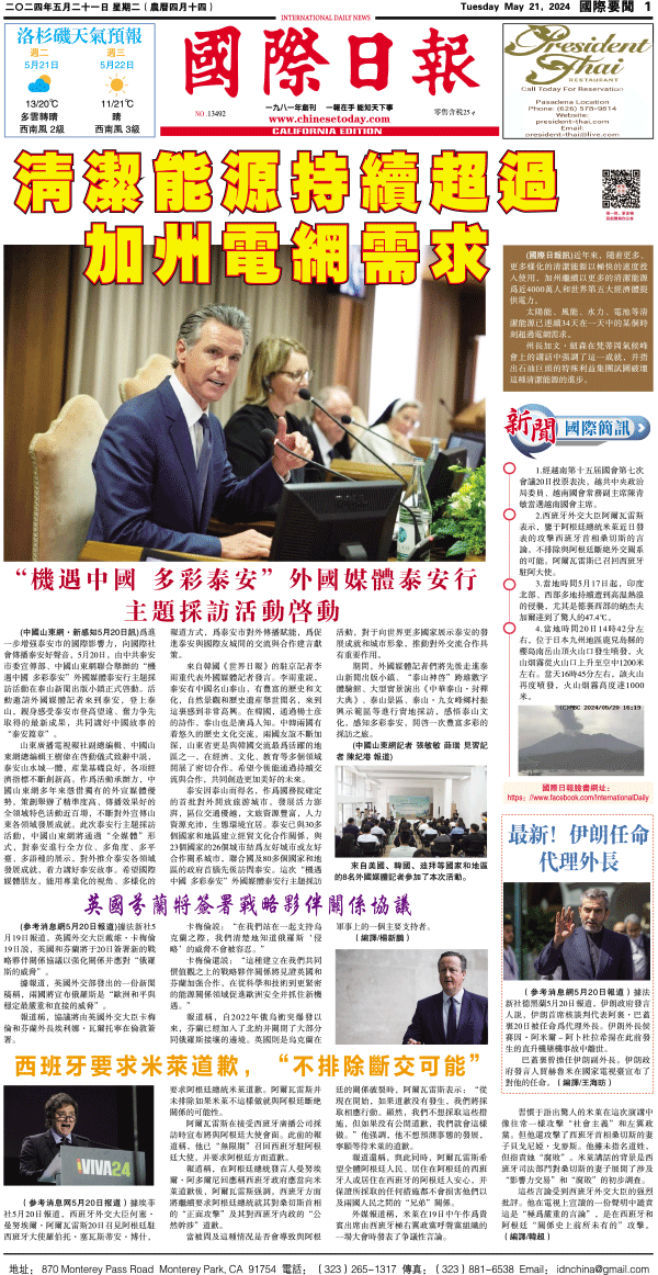 21日國際日報1-國際要聞 发布日期:2024/5/21 来源:國際日報 打印