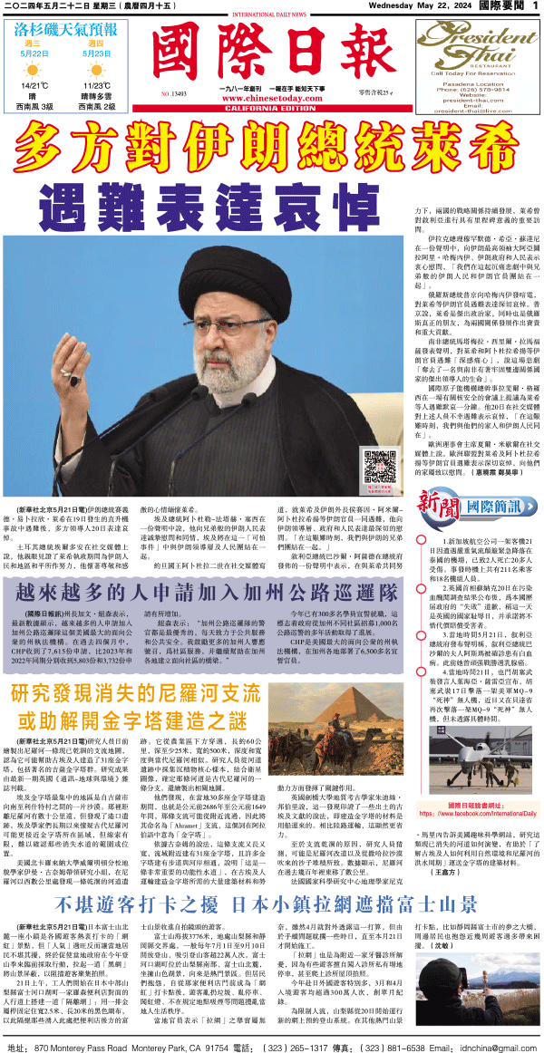 22日國際日報1-國際要聞 发布日期:2024/5/22 来源:國際日報 打印