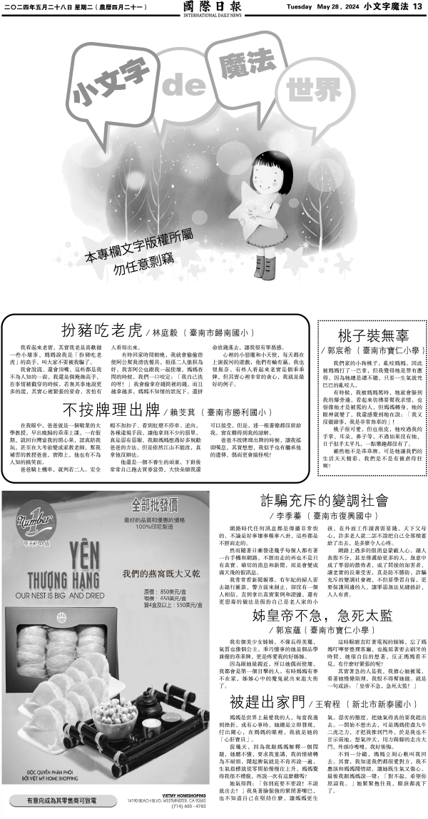 28日國際日報13-小文字魔法 发布日期:2024/5/28 来源:國際日報 打印