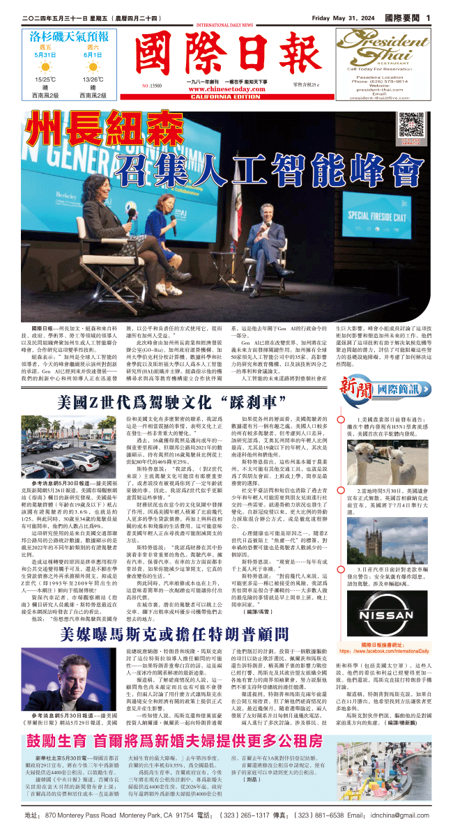 31日國際日報1-國際要聞 发布日期:2024/5/31 来源:國際日報 打印
