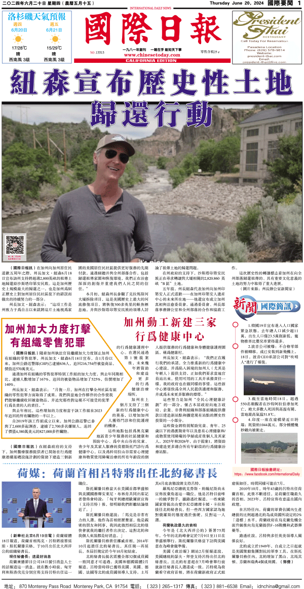 20日國際日報1-國際要聞 发布日期:2024/6/21 来源:國際日報 打印