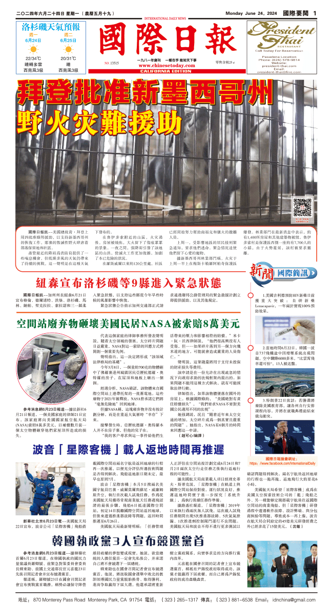 24日國際日報1-國際要聞 发布日期:2024/6/24 来源:國際日報 打印
