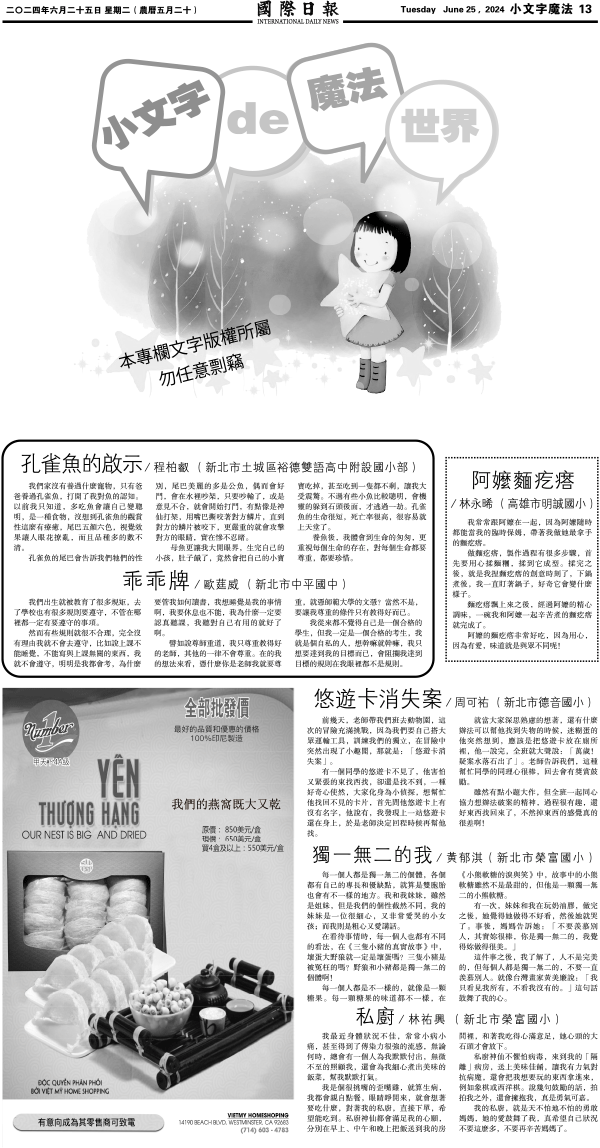 25日國際日報13-小文字魔法 发布日期:2024/6/25 来源:國際日報 打印