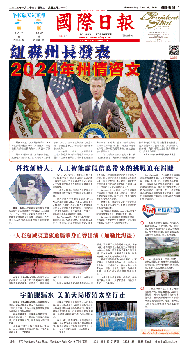 26日國際日報1-國際要聞 发布日期:2024/6/26 来源:國際日報 打印