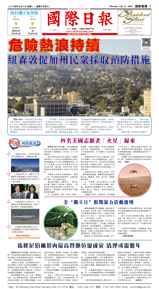 9日國際日報1-國際要聞 发布日期:2024/7/9 来源:國際日報 打印