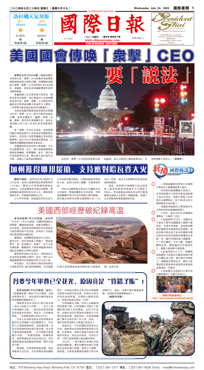 24日國際日報1-國際要聞 发布日期:2024/7/24 来源:國際日報 打印