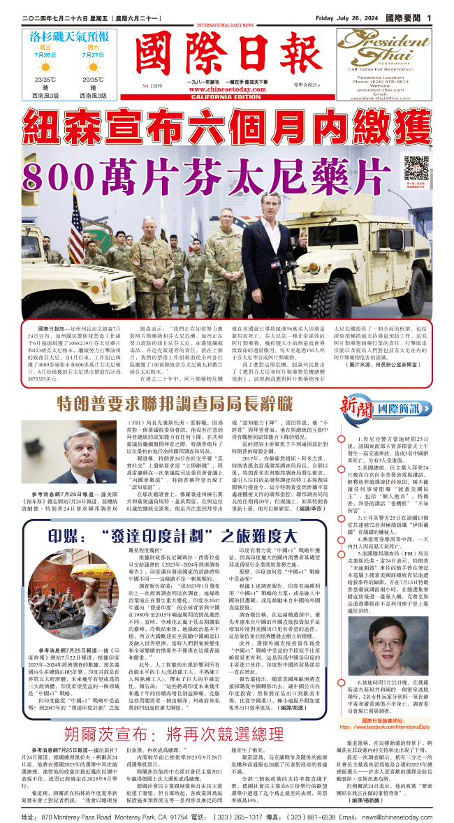 26日國際日報1-國際要聞 发布日期:2024/7/26 来源:國際日報 打印