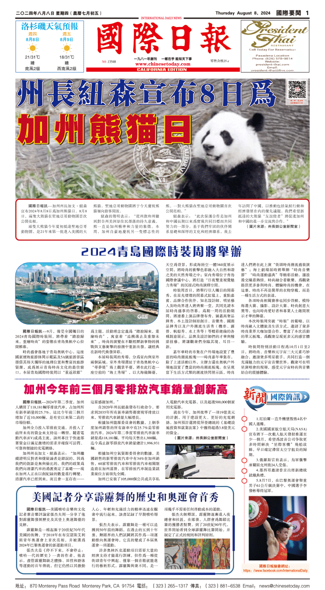 8日國際日報1-國際要聞 发布日期:2024/8/8 来源:國際日報 打印