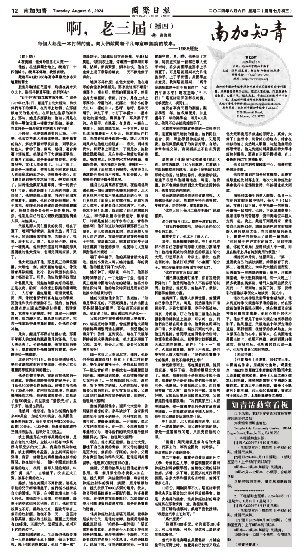 6日國際日報12-南加知青 发布日期:2024/8/8 来源: 打印