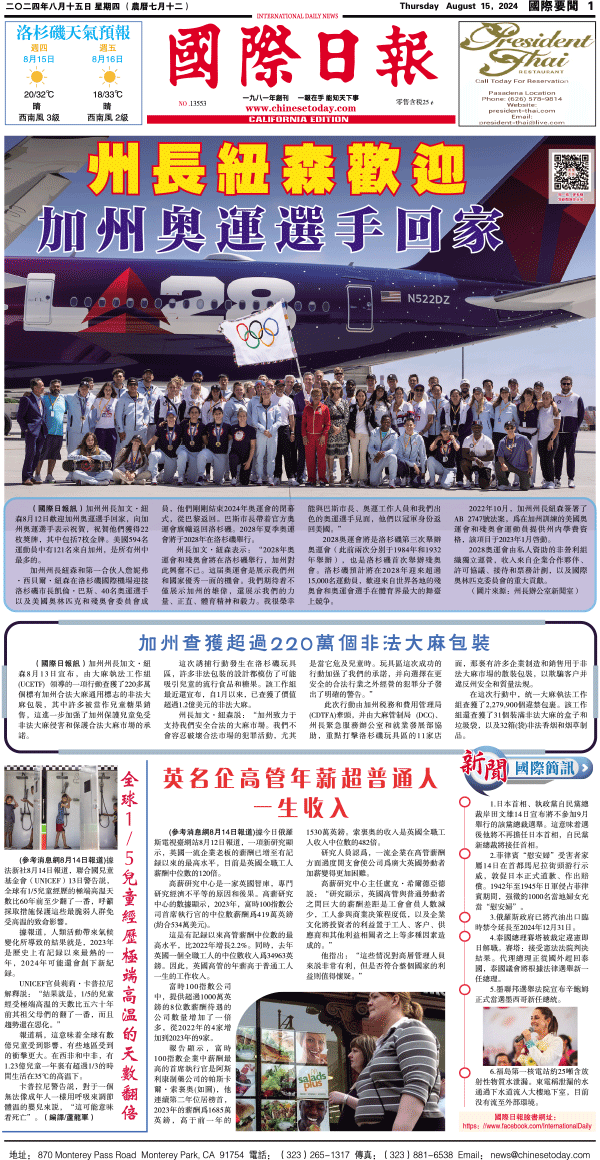 15日國際日報1-國際要聞 发布日期:2024/8/16 来源:國際日報 打印